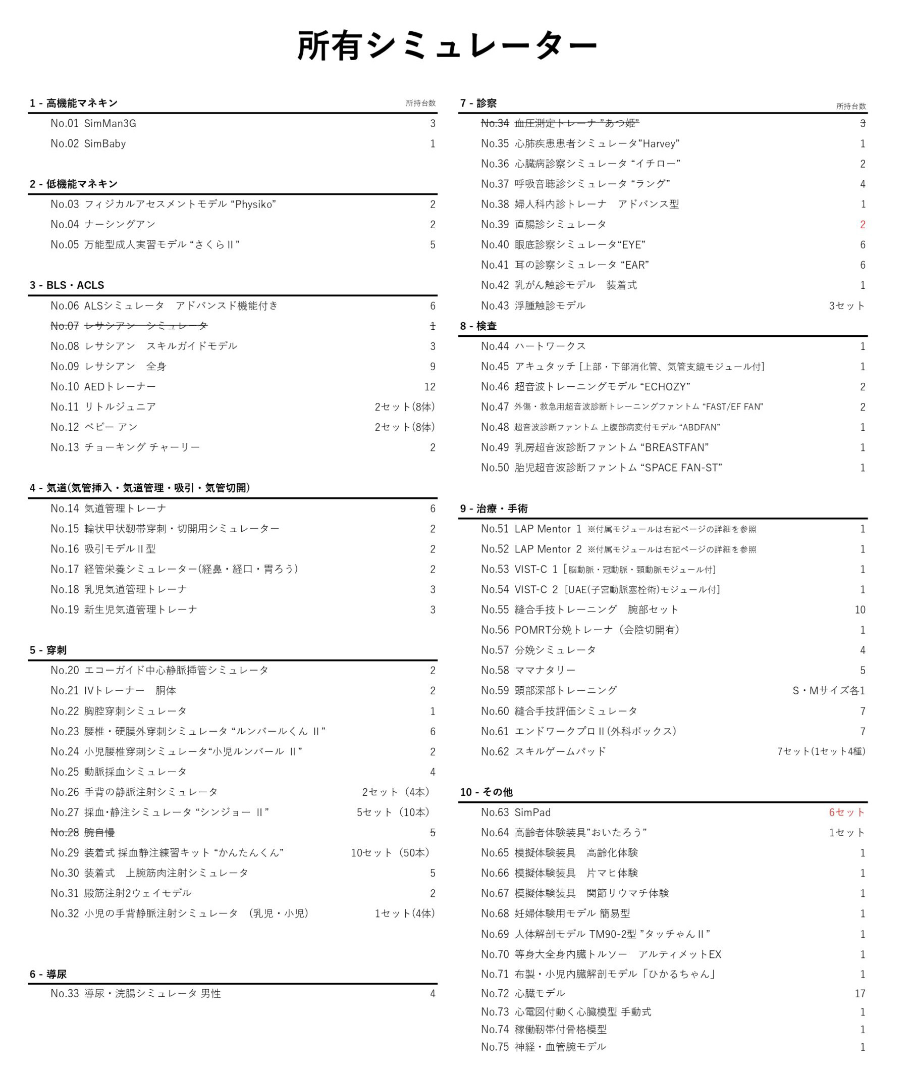 • センターで扱っているシミュレータ&医療機器